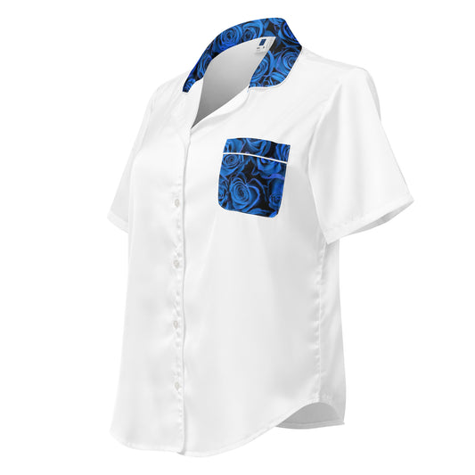 Bougie Soror women’s short sleeve pajama top - blue/white