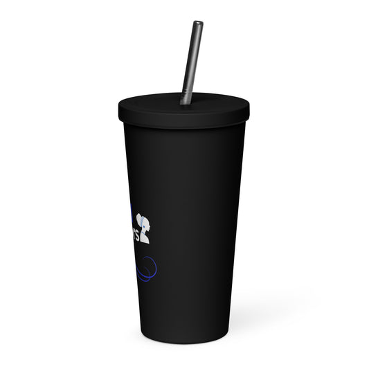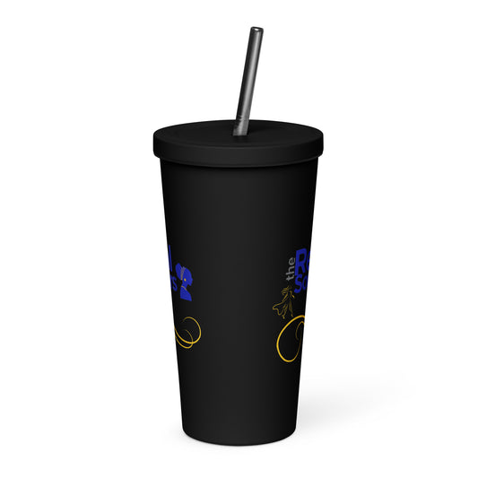 TRS Insulated tumbler with straw - blue/gold design, 2 color options: black,white