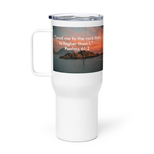 Lead me to the rock travel mug with a handle